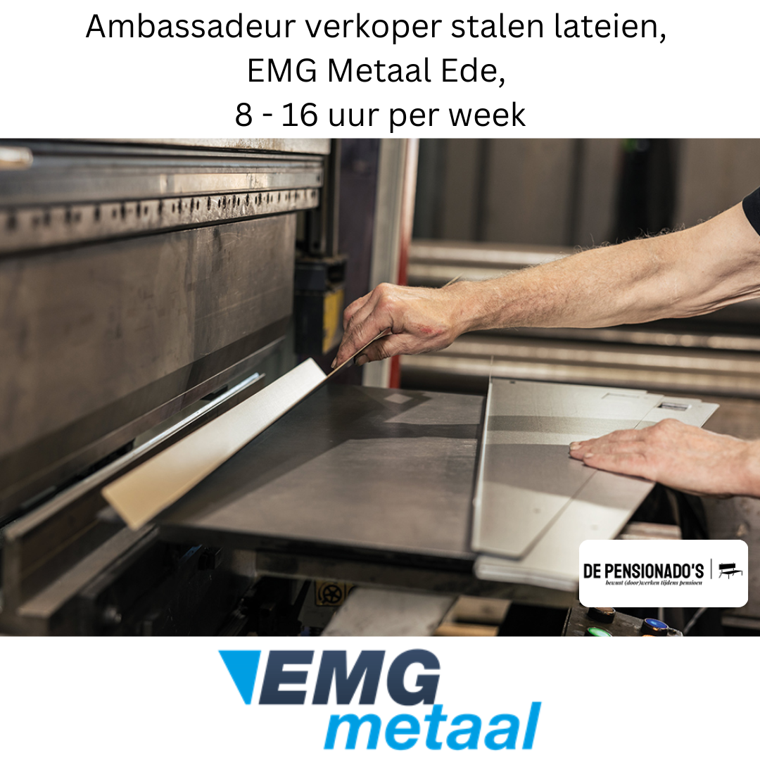 Voor dit onderdeel zoeken we gepensioneerde ambassadeur cq verkoper, die contacten heeft in het MKB van de bouwwereld en het leuk vind om zijn netwerk bekend te maken met de producten en dienstverlening van EMG Metaal.