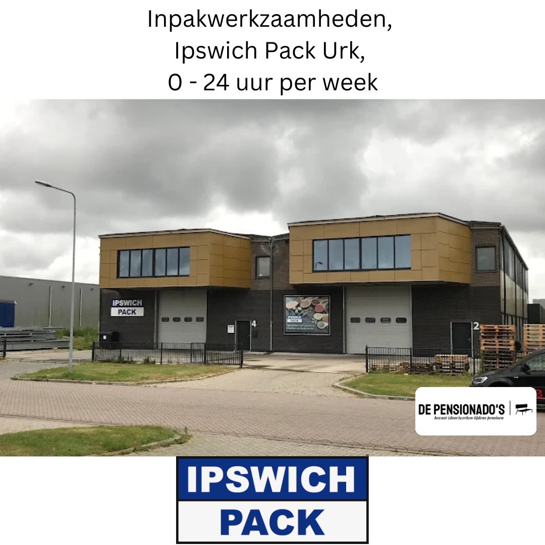 We zijn voor Ipswich Pack op Urk op zoek naar 4 gepensioneerden die op geheel flexibele basis het bedrijf willen gaan ondersteunen met hun inpakwerkzaamheden. Het is staand werk. De ene week kan dat 4 uur zijn en de andere week 24.