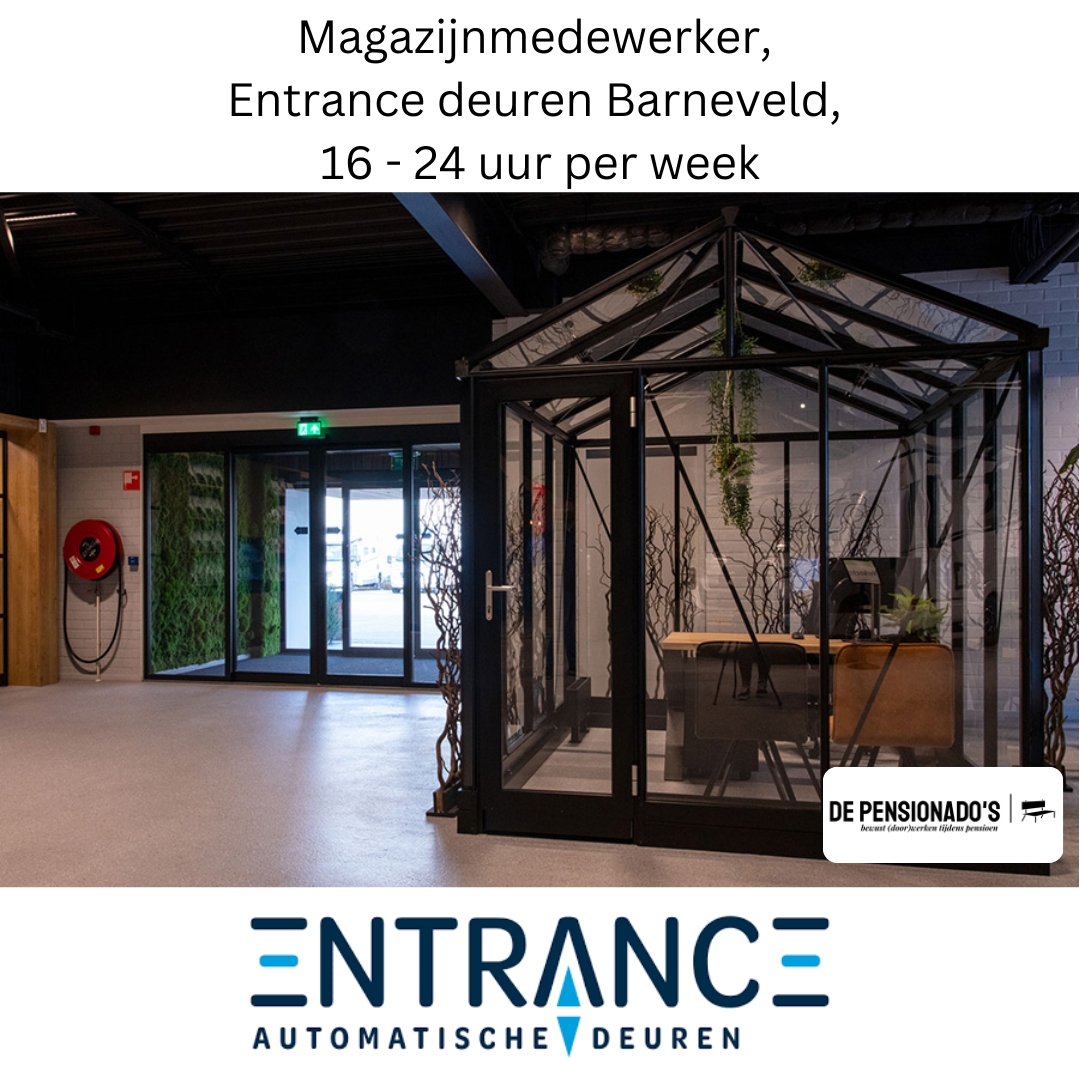 Voor de logistieke afdeling van Entrance in Barneveld zoeken we een gepensioneerde die magazijnwerkzaamheden wil gaan doen.