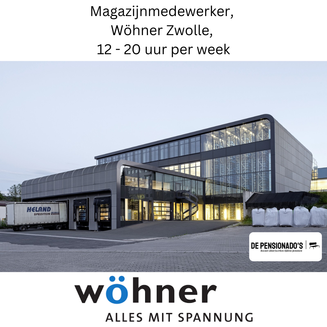 Wij zoeken voor de vestiging van Wöhner in Zwolle een fitte gepensioneerde die 12 tot 20 uur per week de volgende werkzaamheden wil doen:
