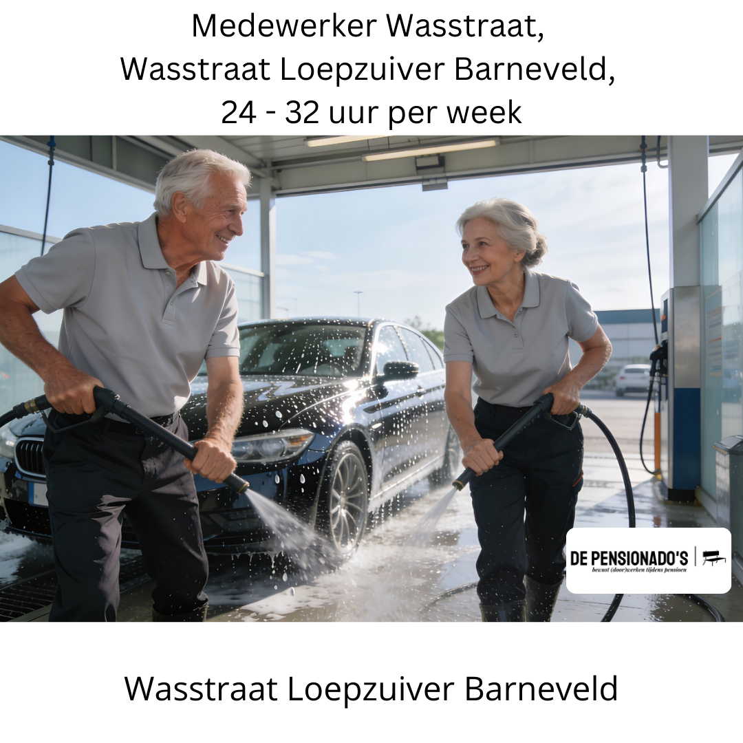 Vind jij het leuk om bezig te zijn, onder de mensen te zijn en auto’s te laten stralen? Dan hebben wij via De Pensionado’s een mooie doorwerkplek voor jou bij een moderne autowasstraat. We zoeken 2 gepensioneerden die 5 dagen per week voor 6 uur per dag beschikbaar zijn. Liefst vanaf 1 maart 2026.