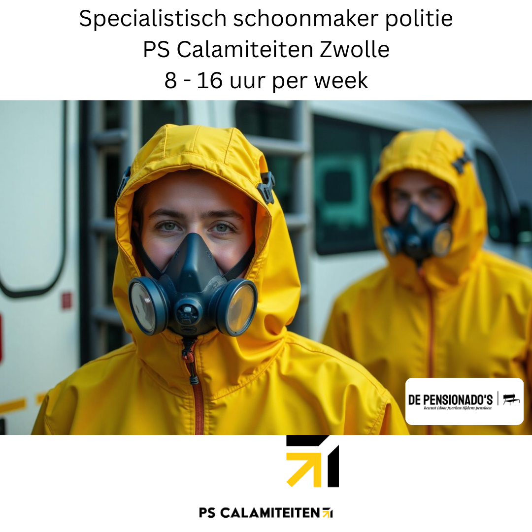 We zoeken voor PS Calamiteiten in de regio Noord Oost Nederland 6 betrouwbare gepensioneerde oproepkrachten voor specialistische schoonmaakwerkzaamheden op oproepbasis. Het zou mooi zijn wanneer je tussen Zwolle, Almelo, Apeldoorn en Amersfoort woont.