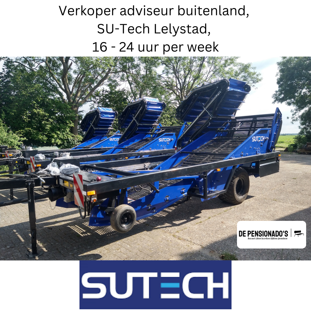We zoeken voor SU-Tech een ervaren gepensioneerde landbouwmechanisatie-verkoper die het leuk vinden om nog een paar dagen per week actief te zijn in de relatiebeheer en verkoop met vooral de focus op het buitenland (met name het afzetgebied Duitsland).